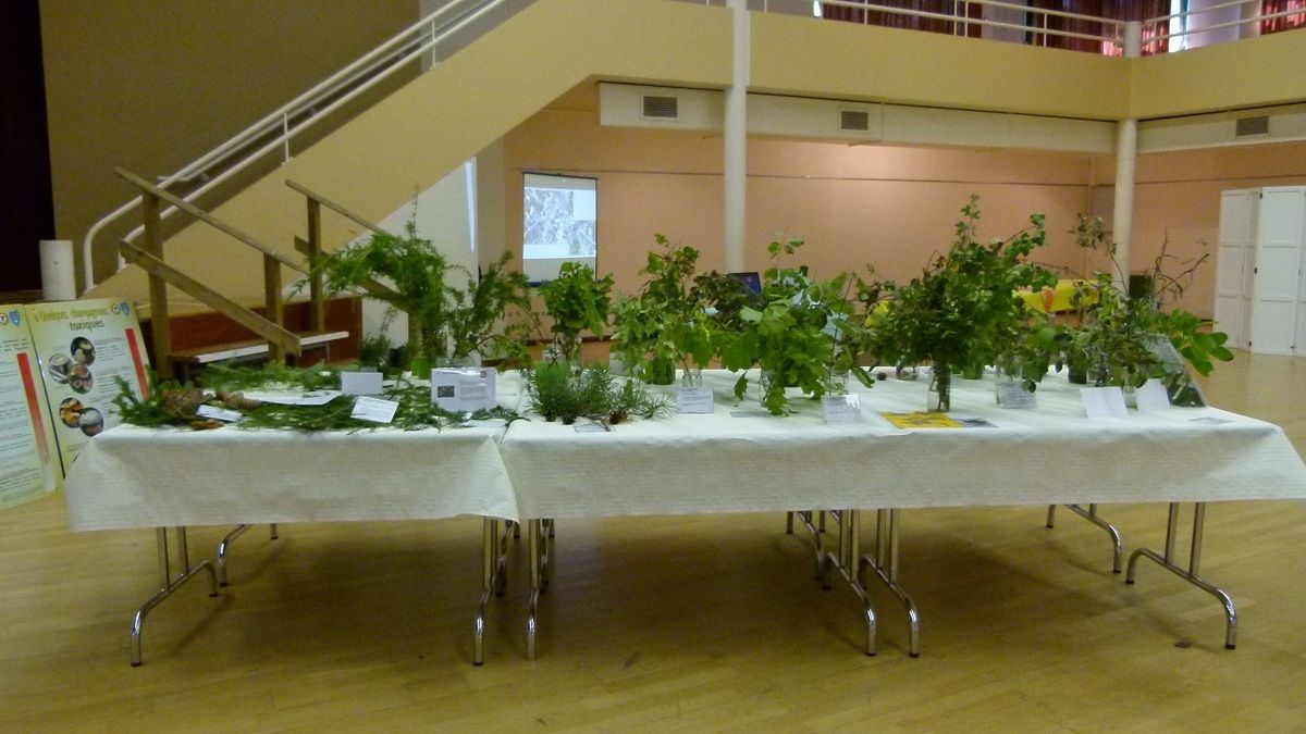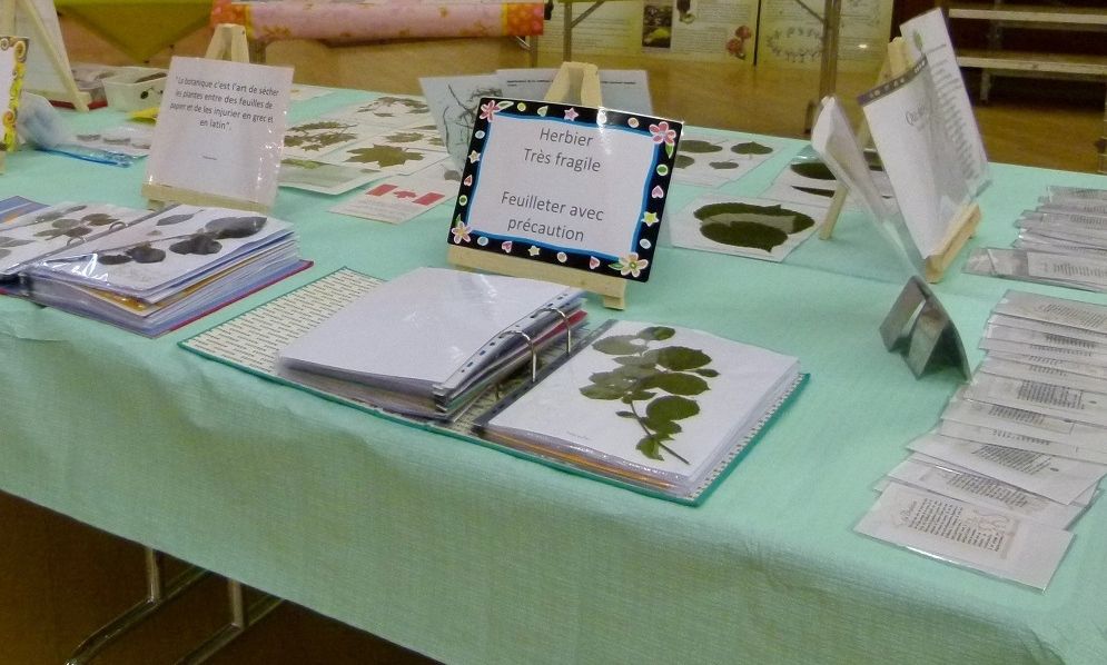Sabrina a exposé des baies, des arbustes et des arbres et son bel herbier de feuilles d’arbres.